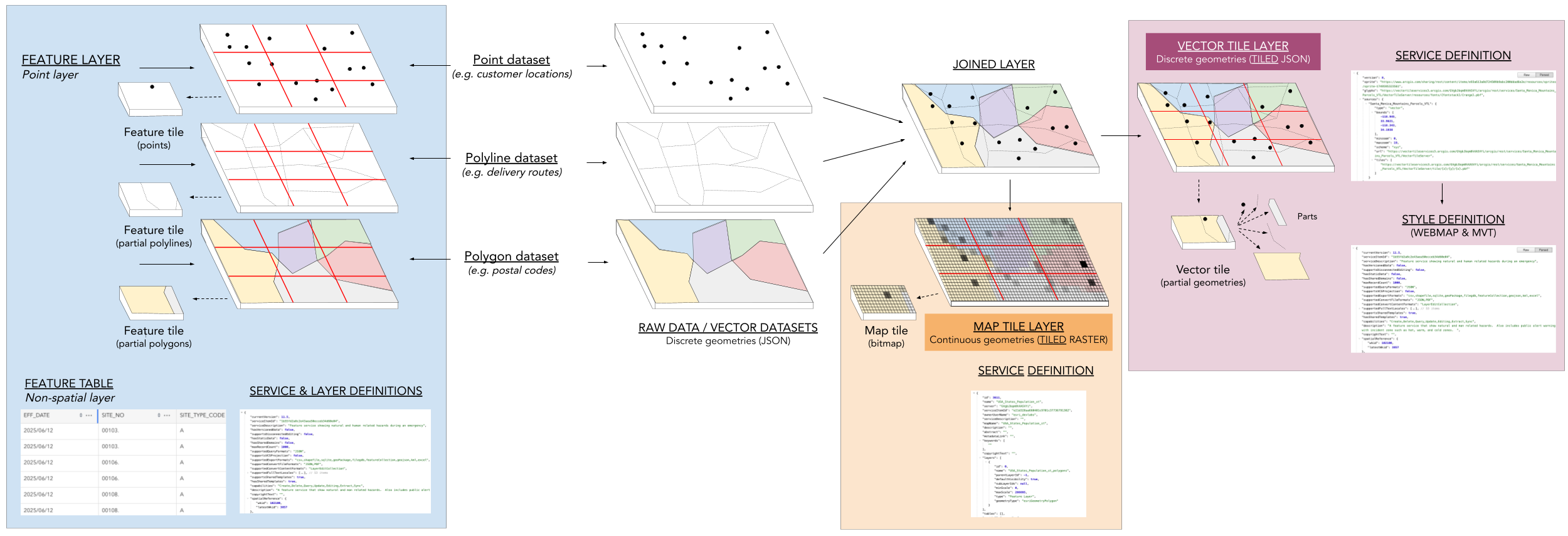 It is designed to help developers, solution architects, data engineers, and other technical decision-makers understand the differences between these widely used ArcGIS-hosted data services (available through a consumption-based model) and how each is specially optimized for different use cases: