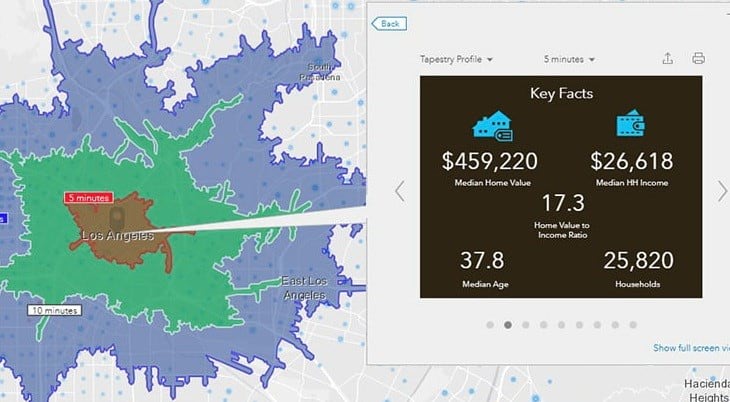 With ArcGIS Platform you get access to an extensive maps and data library. Access demographic and statistical data such as income, spending, market segmentation, and psychographic data. The GeoEnrichment service helps you analyze user-defined study areas and sites around the world for additional location-based context. This context can include data describing people, places, and businesses, with flexible output options that you can consume. You can enrich your datasets, apps, and solutions with GeoEnrichment to drive better understanding, analysis and decisions.