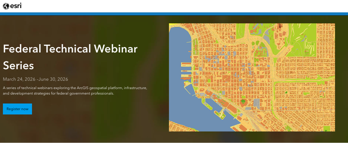 We are very excited to offer this series of Federal Technical Webinars that are designed specifically for federal government professionals who rely on Esri’s ArcGIS technology. Each webinar in the series is unique and provides foundational information that can help maximize productivity, extend functionality, and valuable insights.