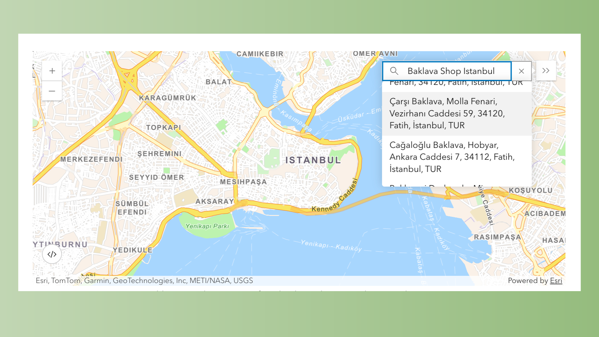 With powerful geocoding capabilities available to developers who are building location-based applications, Esri solves problems associated with incomplete addresses. An operation of the geocoding service called suggest or autocomplete, makes it possible to use incomplete text to search for place names and addresses. In the scenario above, half an address would still yield a successful search for the recommended baklava shop, enabling the app user to find the exact store location and order some tasty baklava to their doorstep.