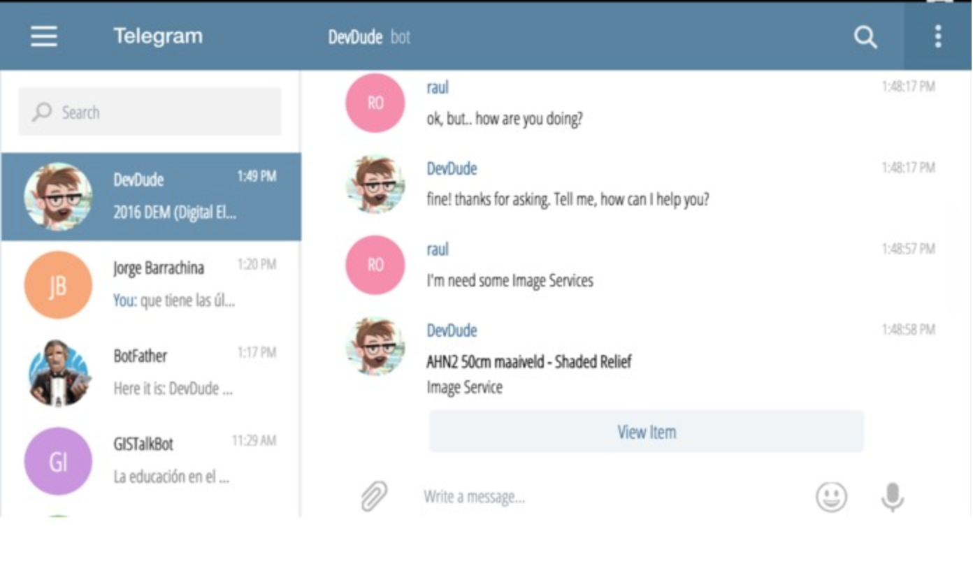 Ask him about published items on AGOL and get awesome curated responses. We heard about Sonar last year at Andrew Turner’s presentation and we though that we could build a bot that could be setup to work within an ArcGIS organization, allowing any Esri Customer could launch their own bot easily. GIS Talk Bot queries information from public items within an ArcGIS Organization.