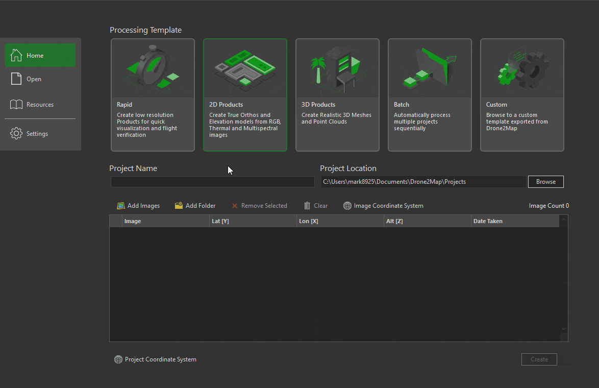 The New Project page has been redesigned to streamline project creation and put more focus on the type of products you can create. Projects are now created by defining the processing template you want to use, then choosing a product type if the sensor supports more than one.