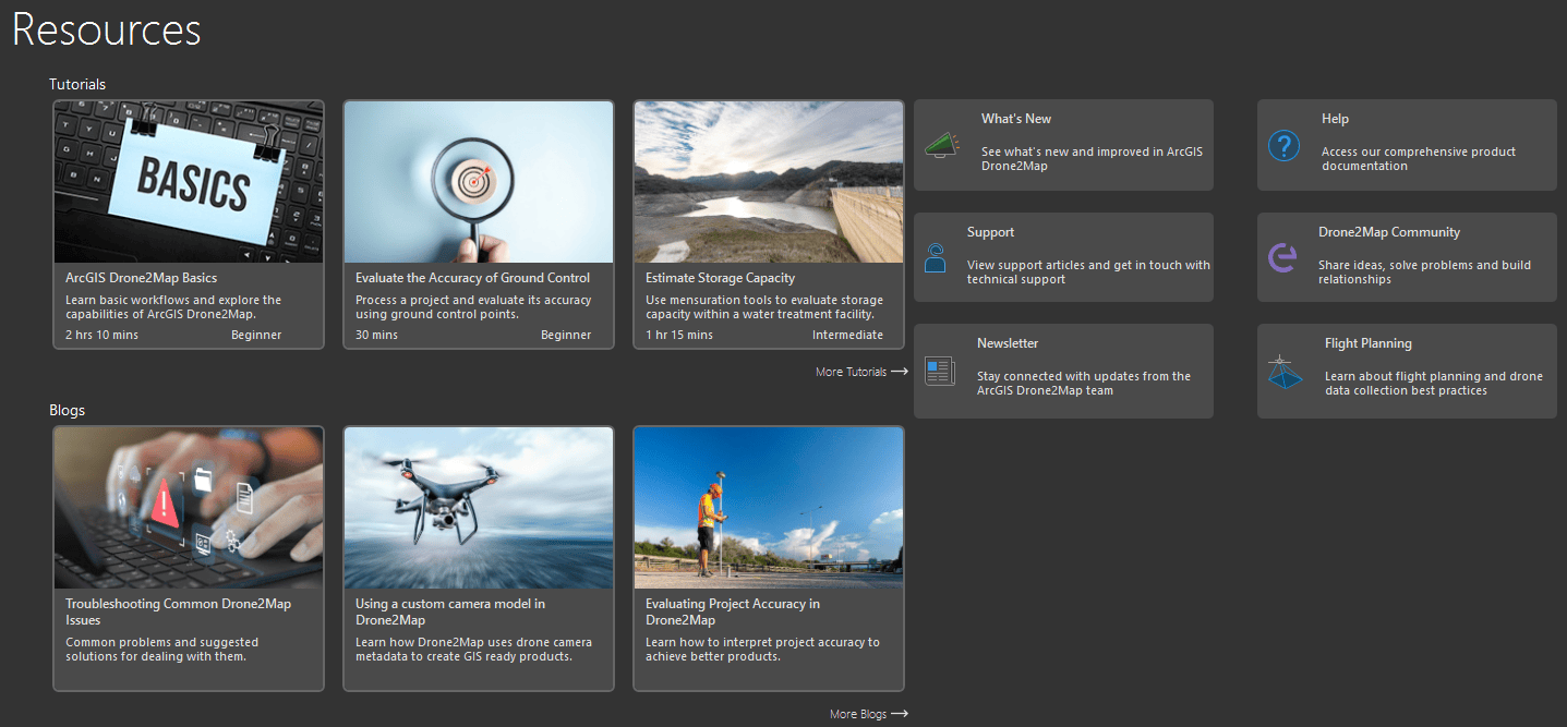 Additionally, the new Resources page provides a knowledge hub for learning how to use Drone2Map and staying up to date on product information. Tutorials and blogs are showcased on the Resources page along with links to Esri technical support, documentation, and the Drone2Map user community. You can also sign up for the Drone2Map newsletter and stay up to date on all things Drone2Map, link below.