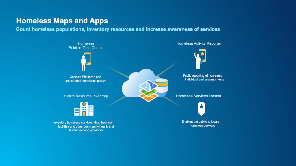 Homeless maps and apps supports community efforts to reduce homelessness. This collection includes 4 new Solution Products: