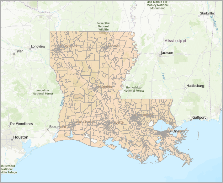 In this scenario, you will add an ArcGIS Living Atlas web map of census tracts, filtering to look at Louisiana. Then you can add Tapestry and car ownership data, style the map to highlight patterns in the Dominant Tapestry LifeMode group and zoom in to the Ninth Ward neighborhood of New Orleans.