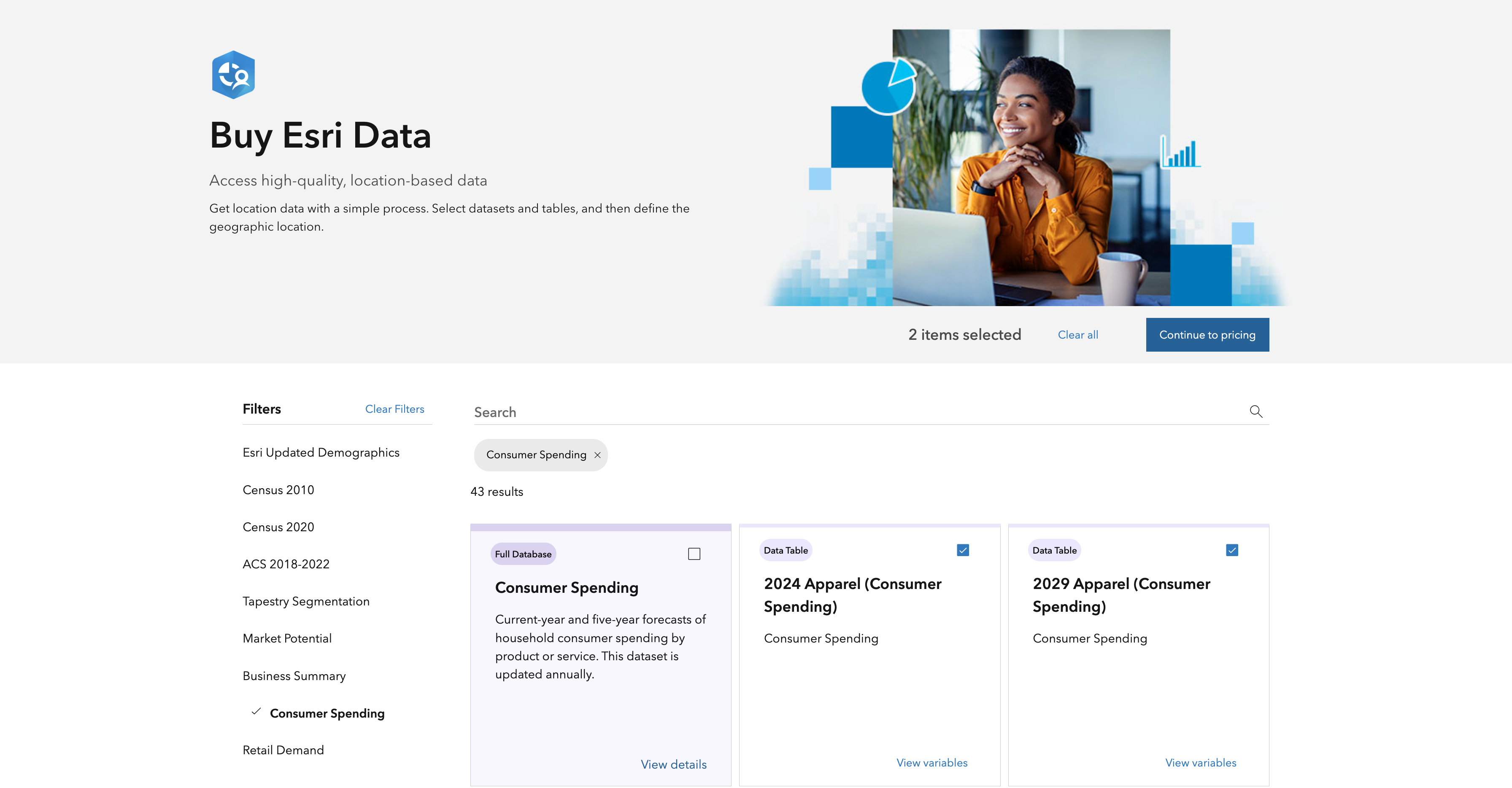 To improve discoverability and ease of access to data offerings, Esri has introduced an e-commerce experience for users to purchase demographic data for the United States.