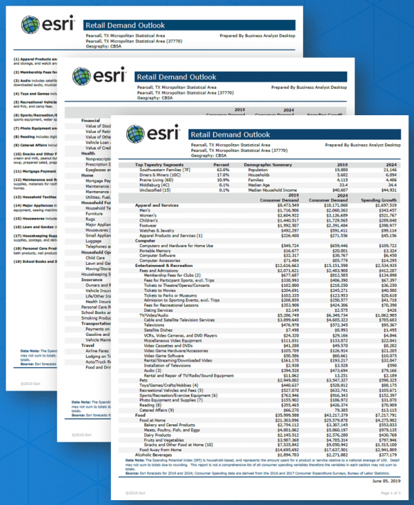 Esri’s five-year forecast of Consumer Spending provides a glimpse of future spending for consumer products and services five years out. The data can be viewed in a new report called Retail Demand Outlook.