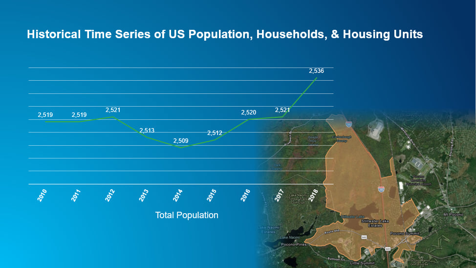 Generally speaking, geography changes and methodology improvements make comparing data from one year to the next a tricky business. New with this release, Esri’s vintage-based time series enables users to see an apples-to-apples comparison of population, household, and housing unit change over time. Standardizing multiple years of data on a single vintage base, results in a true understanding of growth, or decline, in an area. With the historical time series from Esri, you can see how things are changing on an annual basis from 2010 through 2019.
