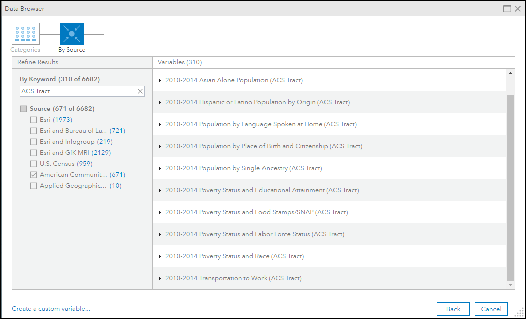 These variables are available for mapping at the State, Congressional District, County, and Census Tract levels of geography in the Business Analyst and Community Analyst web apps. View a detailed list of these variables.