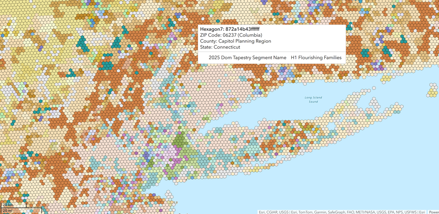 With the appropriate tools and a well-defined approach, Tapestry can provide a powerful, multidimensional lens into the dynamic relationships between lifestyles, life stages, and location. It can be applied to small-scale analysis across a wide range of sectors, offering community-level insights relevant to marketing and commercial real estate as well as urban planning and policymaking.