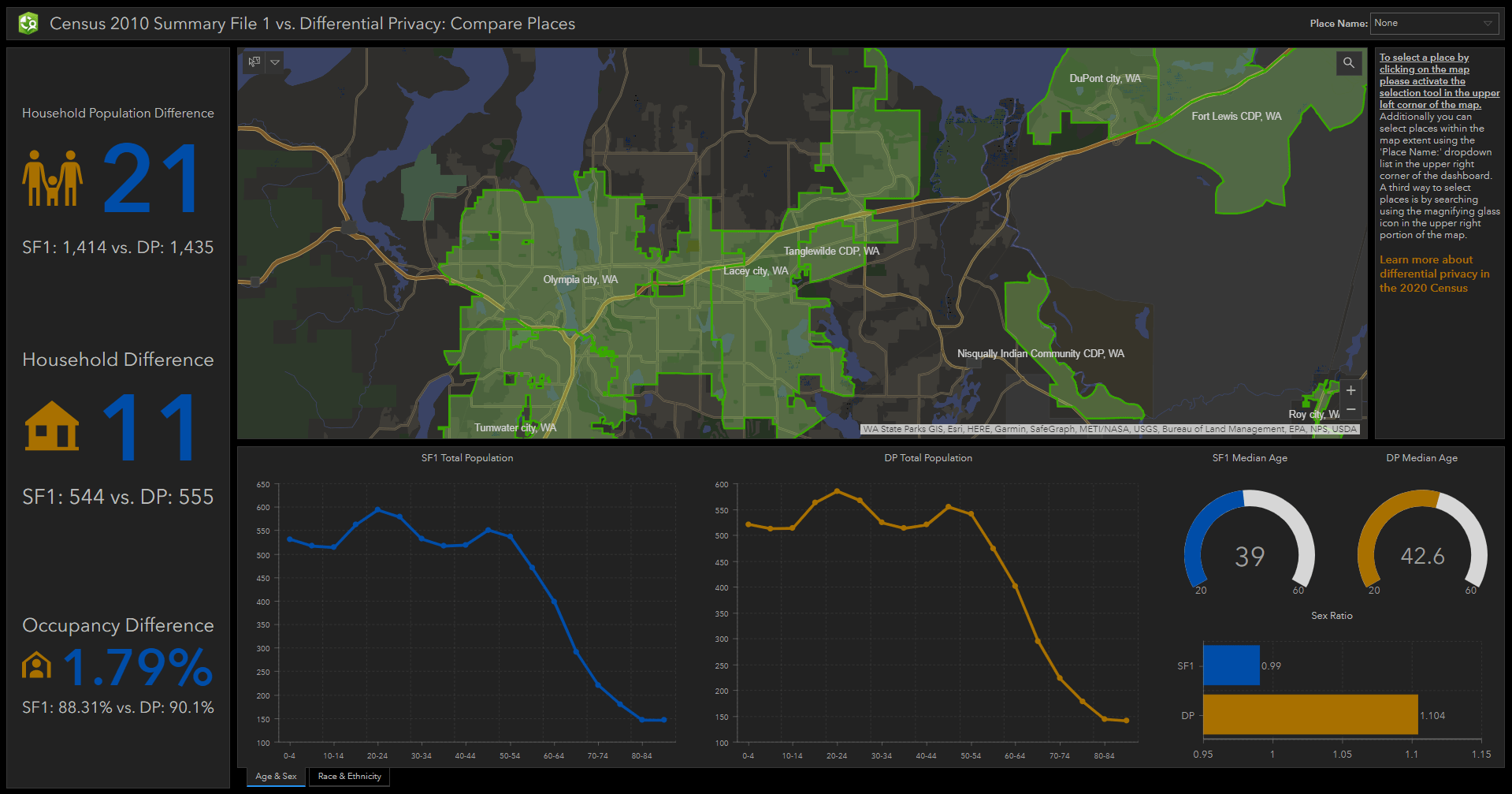 You can explore place-level changes between the original Census 2010 Summary File 1 (Sf1) data and the differentially privatized data in this application: