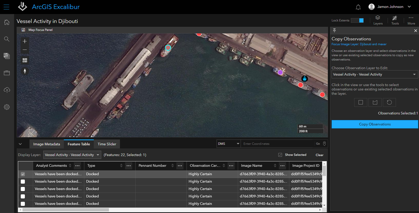 Have you ever found that collecting observations from imagery in a single geographic region is a time-consuming task? With the latest release, ArcGIS Excalibur has made it easier than ever to view observation metadata in the newly implemented feature table. Users can now quickly copy or edit existing observations and save the newly created observations in their system of record for downstream analysis. Let’s take a look at this workflow by walking through a few easy steps.