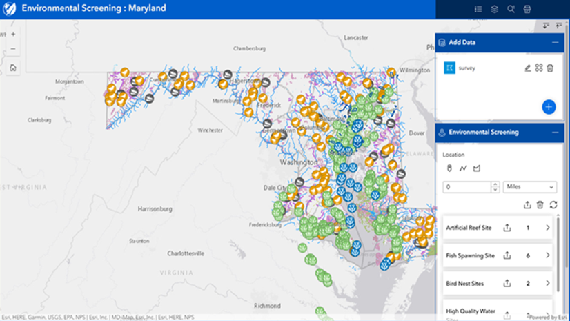 In the following examples, you will learn how to configure the Near Me widget to effectively answer each question. Open this app template to view the different configuration examples and create your own app: Near Me for Spatial Analysis template