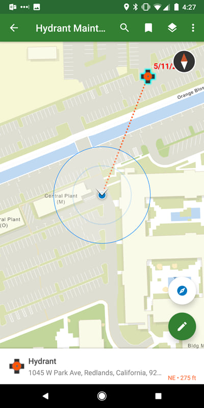Walk right to your assets using the new compass tool. See how far you are from your assets and which direction you need to go. From a feature, search result, or pin, select Compass . This complements the directions that are available through integration with Navigator for ArcGIS and Google Maps.