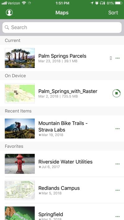 You can’t be connected everywhere you want to explore, so now you can take your maps offline with you. Prepare a map for offline use in your office and put it on your device, either by downloading it through the app or by sideloading it onto your device. Once it’s on your device, you can work with it in the same way as any other map in Explorer. For details on making offline maps, see Make offline maps.