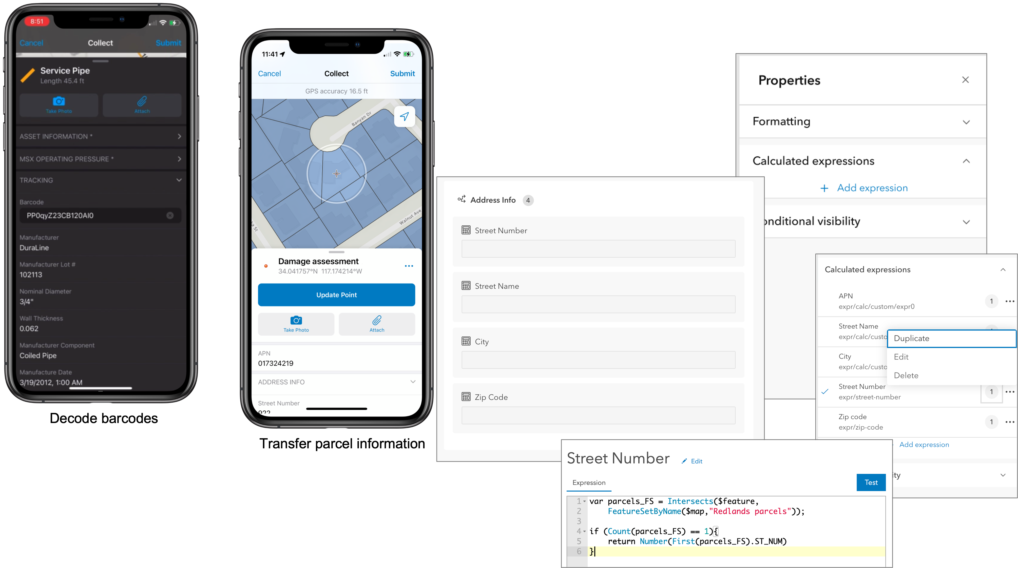 Fully supported offline, now you can automatically transfer address information from a parcel to a newly placed point contained within, use the camera to scan and decode barcode information in realtime and store details with the new pipe placed in the ground, or pull the email address and full user name details of a signed in contractors for follow up.