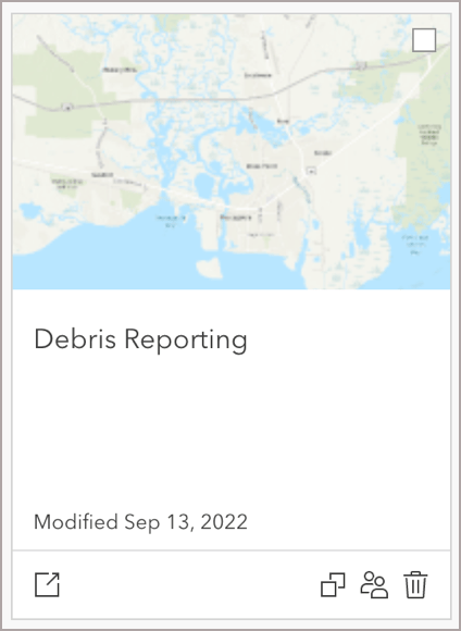 ArcGIS Online includes a Debris Reporting feature layer template. To access it, sign into your ArcGIS Organization, click Content, and click New item.