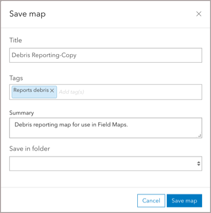 Now that we have created a map, we will use the Field Maps web app to configure the form responders will use for debris reports