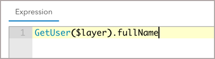 The Arcade editor will open. Add this expression to the expression builder window: GetUser($layer).fullName