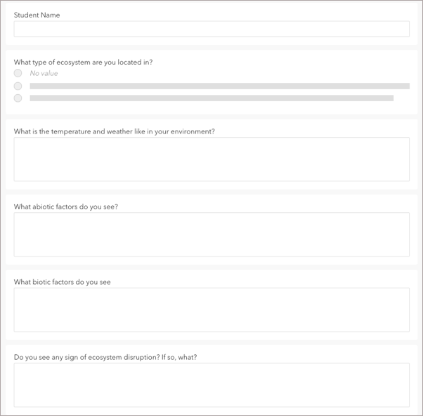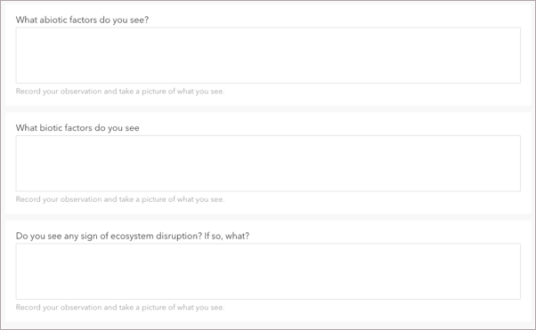 Next, let’s create the form students will use to collect information about the ecosystems in their area. First, we will add a Student name field that students will use to input their name.