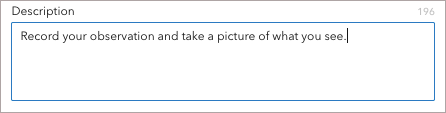 In the Properties pane, add the following sentence to the Description box: Record your observation and take a picture of what you see.