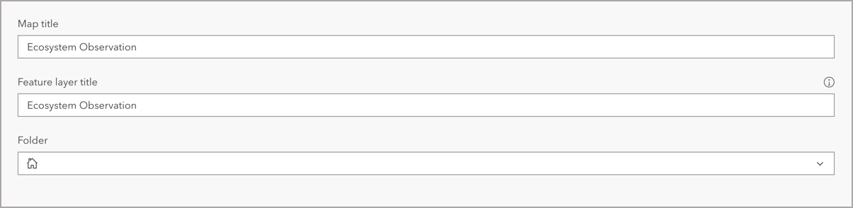 On the Title and save page, add a name for the map, input a feature service title and choose the folder the map will live in.