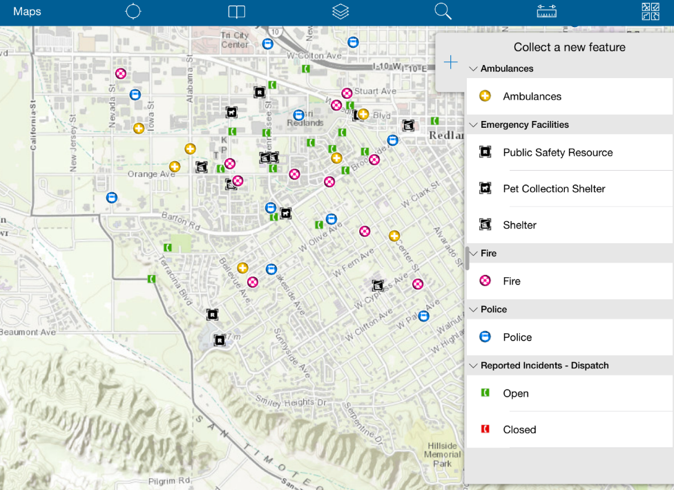 Say you’re a member of an emergency response team that has been sent to Redlands, California to gather and update information about earthquake relief efforts. With Collector for ArcGIS, you can gather information, capture and share photos and videos, and update your team of your progress, whether you are online or disconnected.