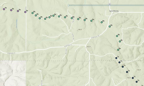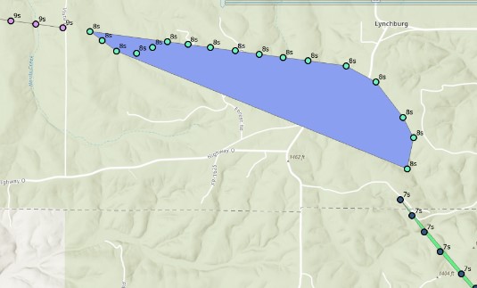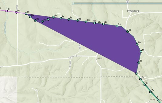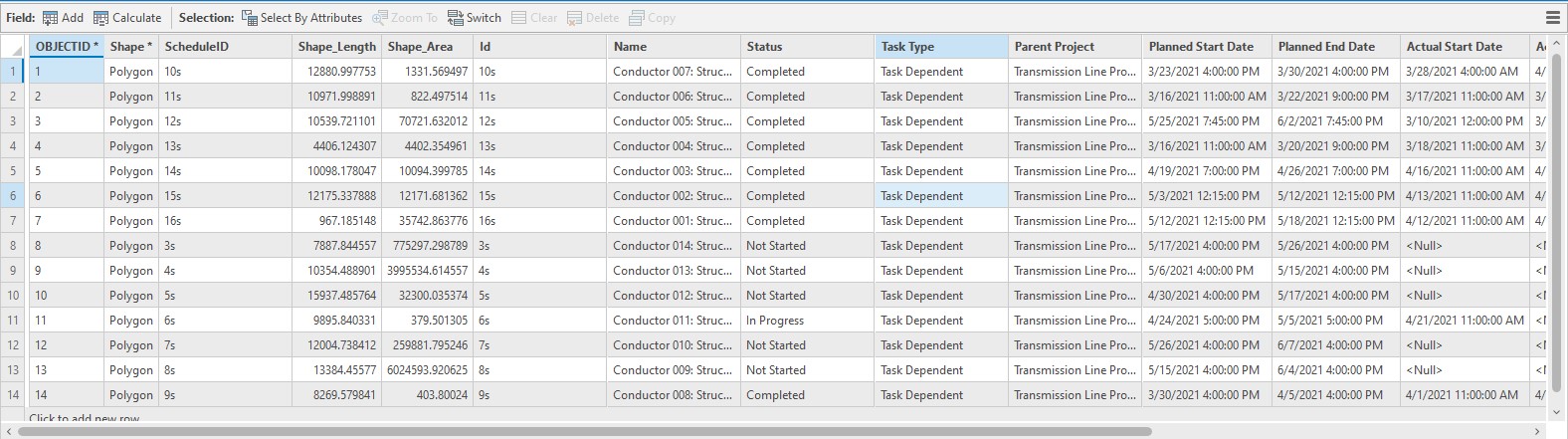 In this example we have 2 layers, Spans and Structures that represent power lines and towers, respectively. The Spans are lines and the Structures are points; you do not have to start with polygon features. All features in both layers are assigned a schedule ID value that matches the schedule data.