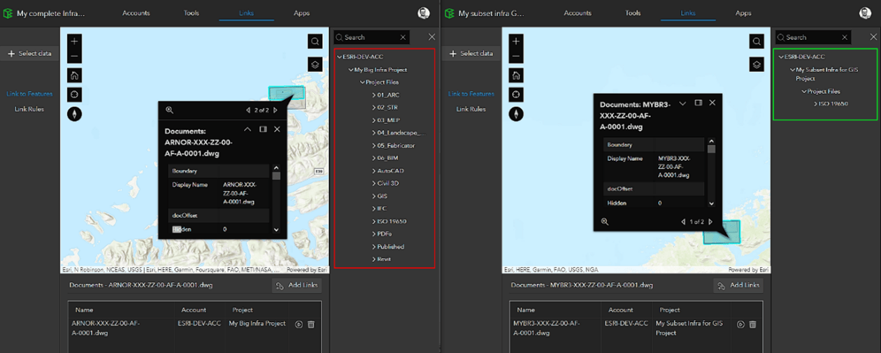 While the option to select folders to be processed in ArcGIS GeoBIM is under development, Bridge allows files to be copied and synchronized between multiple projects in ACC today. These projects can also be across different Autodesk accounts. The process can be automated for updates to be synchronized in real-time, including across different Autodesk accounts.