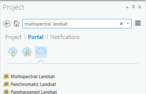 The Multispectral Landsat data mentioned here can now be found in the Living Atlas of the World (https://livingatlas.arcgis.com/en/home/) as opposed to the ArcGIS Online cloud icon referred to in step 2. You may access it through ArcGIS Pro in a similar fashion. Instead of clicking the ArcGIS Online cloud icon in the Portal tab of the Catalog Pane, click the Living Atlas icon (cloud icon with a book), and search for multispectral landsat. Also, check out this document for the most up-to-date information on how to access Landsat 8 data hosted on AWS (https://docs.opendata.aws/landsat-pds/readme.html).