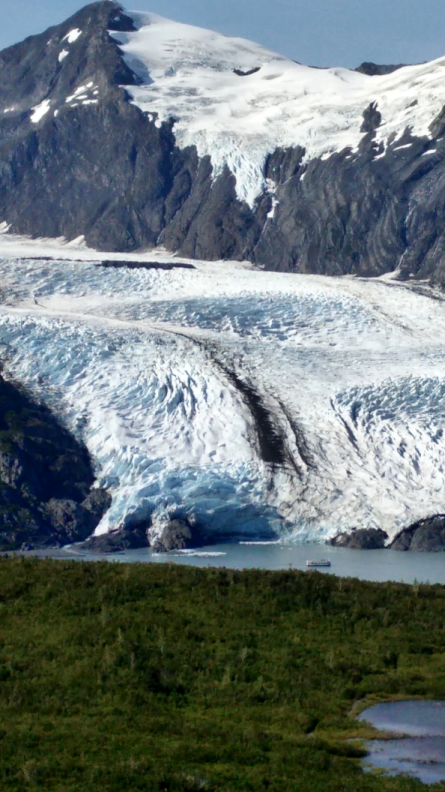 It’s hard to get a sense of scale when looking at glaciers from imagery. Here’s a photo I took of the same glacier with a pretty large ferry thrown in for scale. I’m guessing that what is in the photograph is showing maybe 15% of the glacier.