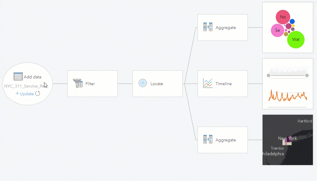 One of the greatest powers of GIS is to relate things (spatially) that are otherwise unrelated. The number of spatial datasets available to you for making these relationships just got a lot bigger. When adding data, there is now an option for accessing public layers in ArcGIS Online. Once added, it acts just like your own dataset – overlay it with other data, create relationships with it, and use it for analysis. In addition to adding public data – public models and themes can also be added to Insights.