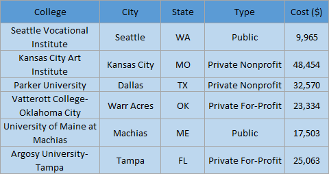 Histograms are created by grouping numeric values into equal-interval bins then plotting the frequency of values for each bin. For example, the annual cost of colleges in the United States (including tuition, fees, and on-campus housing) could be plotted in a histogram. Here is a small sample of the data that could be used: