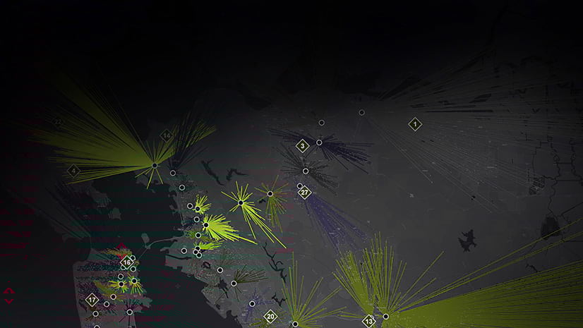 In addition to vector maps, Esri’s Insights for ArcGIS gives you analysis capabilities unlike any other analytical platform on the market today, especially from a spatial standpoint. For example, on-the-fly link analysis, also known as graph analytics. Perform this type of analysis on a map or a chart to uncover relationships between people, places, events, and other entities. Link maps connect the dots for you, but they also model relationships and connectivity, revealing the strength of those relationships. A thicker line and bigger node (point) will indicate a stronger relationship between the places you are connecting. Insights has many more spatial analytic operations just like this.
