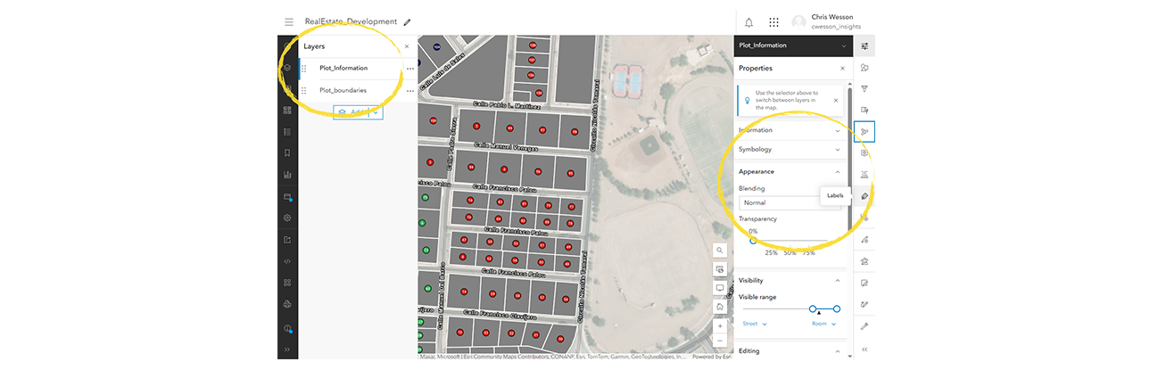 Next, open the Layers tab from the side menu and click on each layer to open up the ability to edit layer symbology, labelling, pop-ups, and more. For geodatabases, expand it out to see the layers within.