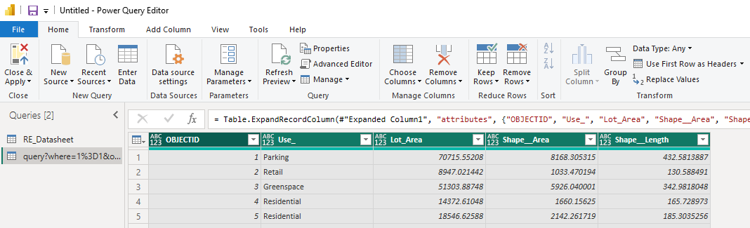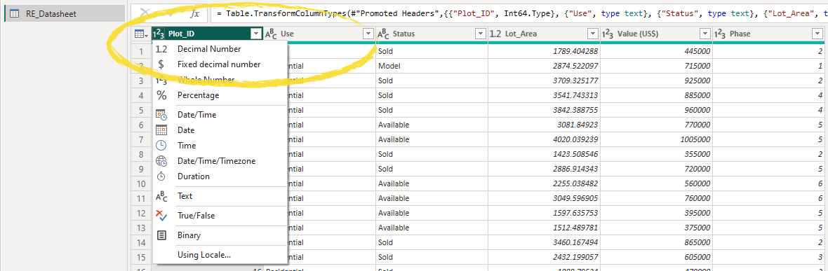 To change a field type, click on the icon to the left of the field name. To delete columns, right-click on the field name and choose Remove. For anything more, I suggest watching the middle section of this quick overview video. Any non-spatial table joins you had set up in Insights, you can replicate through Power Query as explained here. Once you’re happy choose Close & Apply.