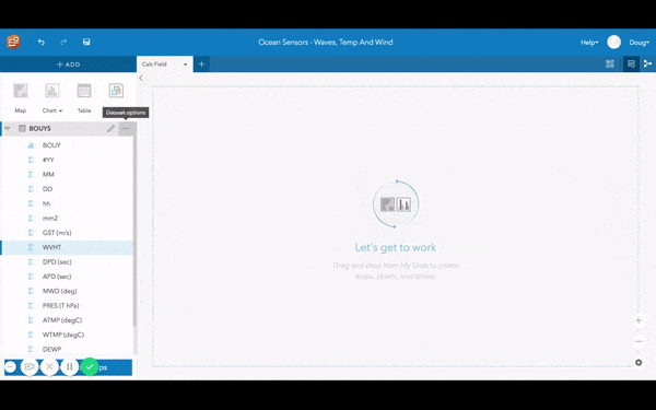 While I probably will never be a forecaster (or work for the National Hurricane Center), I wanted to put myself in an official’s role and use Insights for ArcGIS to explore ocean sensor data. The sensors I looked at were mounted on bouys floating in the Atlantic Ocean. In particular (after hearing a news cast) I wanted to discover how unusual an 83 foot wave is during hurricane season and see what kind of data analysis I could apply to add context for those who may appreciate a little frame of reference.