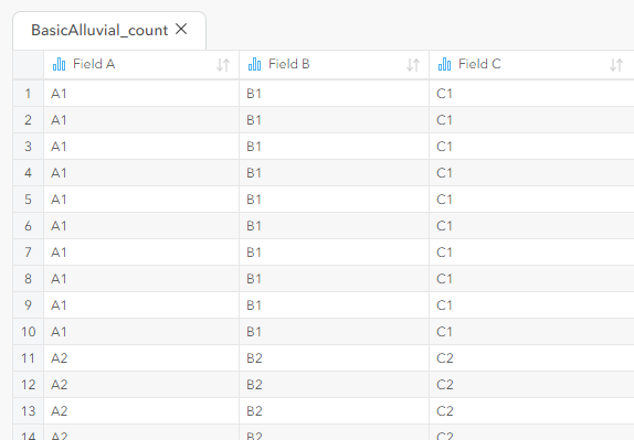 From the data pane, we can see the data table for the resulting chart, which looks as follows: