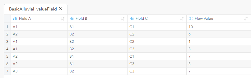 And then, either from the chart button or simply by dragging these fields to a new Alluvial chart on the page, we get our required chart.