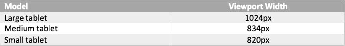 This concept becomes particularly important when designing for multiple devices within the same category. Below is a table of current generation tablets and their viewport in portrait mode.