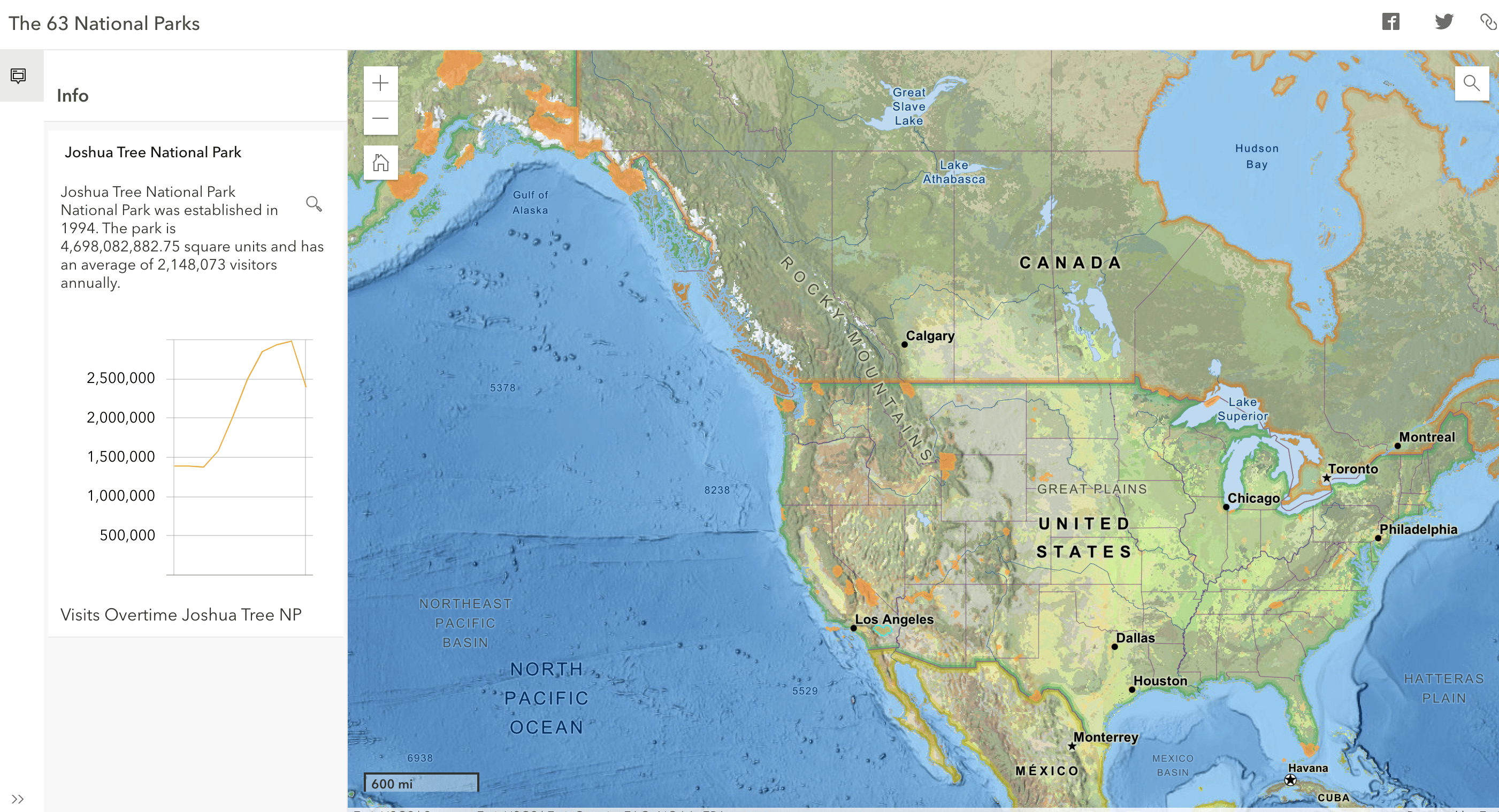 ArcGIS Instant Apps quickly transform your maps into apps to provide your audience with an intuitive experience to interact with your maps and data. This blog illustrates how you can highlight different stories from the same data or map using a handful of Instant Apps. All the examples will use National Park data and maps. Using different Instant Apps, we can answer a variety of questions and showcase specific map features.