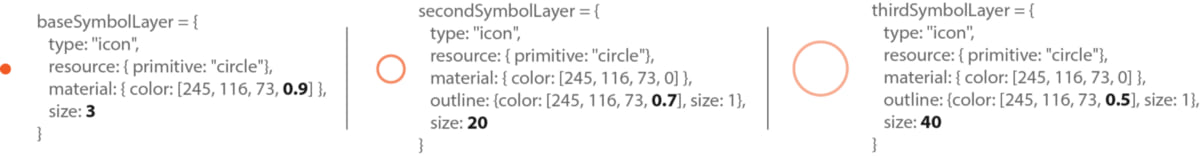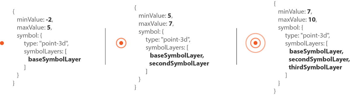 To visualize classified point data we’ll use a ClassBreaksRenderer, where each class has a symbol with concentric circles, depending on the earthquake magnitude: