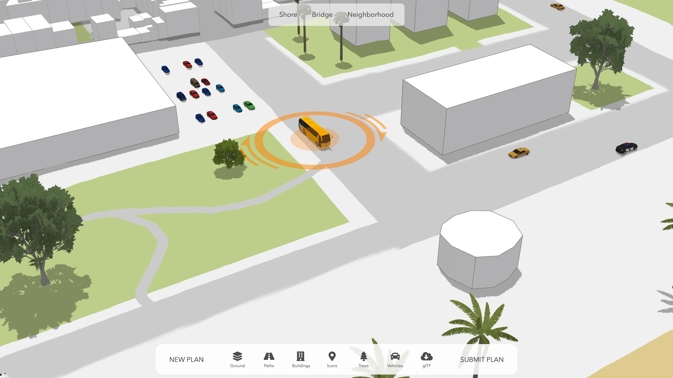 Having an empty lot with a simple basemap, it’s time we allow anyone’s creativity free rein coming up with a proposal plan. To start with, it would be nice if users could change features on the basemap. When a neighborhood is redeveloped, it’s common to create new green space while laying out streets or walking paths from scratch.