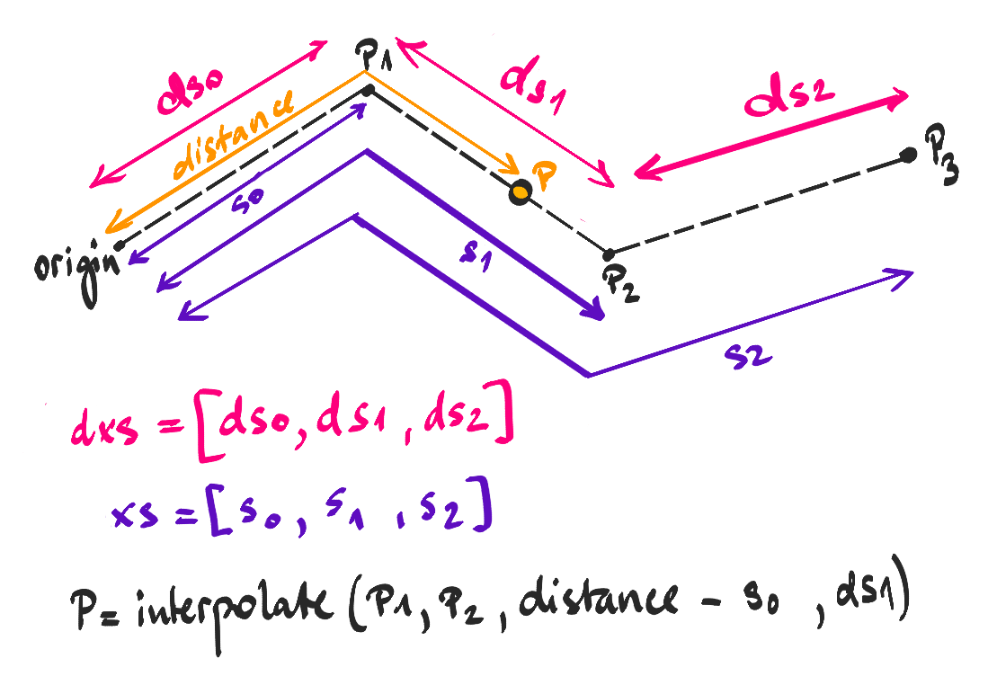- when we find the two points, we interpolate between them using the previously calculated distance to figure out the new position.