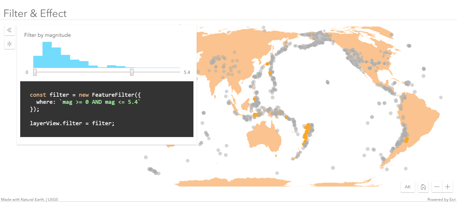 One of the most powerful aspects of the API is the ability to perform client-side analytics such as querying, statistics, filtering, and geometry operations. The ArcGIS API for JavaScript: Client-side Mapping and Analytics session covers the core programming patterns for building client-side tech with demos such as client-side filters, filters and effects – a look at a century of earthquakes, and measuring how far the Mars Curiosity is from Opportunity.