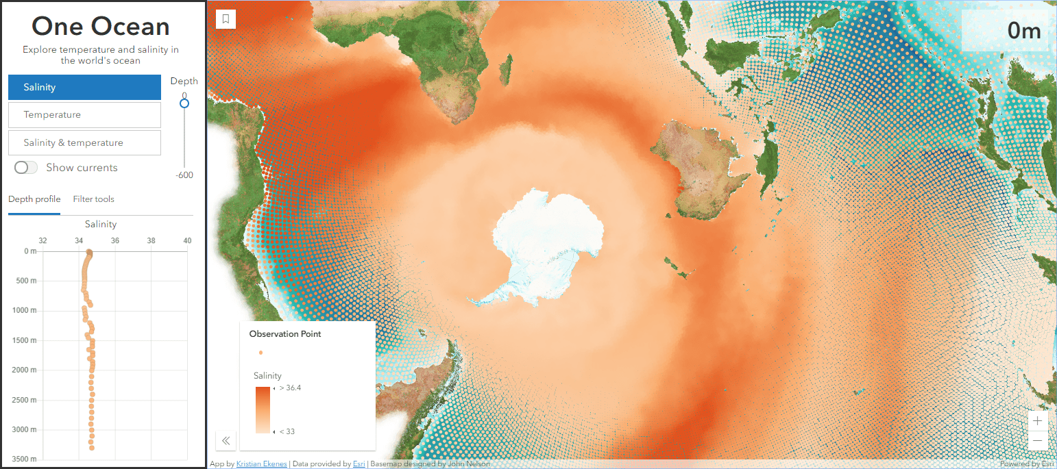 The Best Practices for Building Web Apps that Visualize Large Datasets session describes the process for preparing the data in the One Ocean app so it can be effectively rendered and explored in the browser. The data started from 52 million points (4 GB) and resulted in 85,000 points with hundreds of attributes (280 MB) after processing by the developer and the ArcGIS platform. The full repo is here.