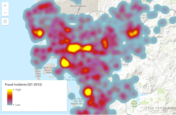 Heatmap renderer. Heatmaps are now supported using the HeatmapRenderer. Heatmaps help visualize large, dense point datasets as a continuous surface, which can be weighted with data values. Heatmaps can be brought into your app via your web map, or created directly in code.