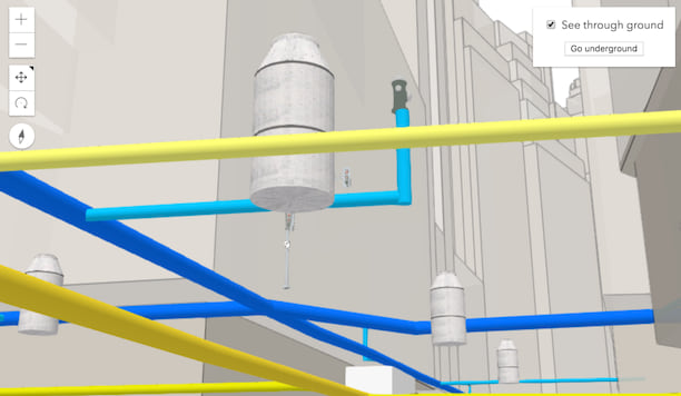 Underground navigation in global scenes. Until this release, underground navigation was limited to local scenes. You can now view and navigate subsurface data in global scenes. The ground can also be made partially transparent, allowing users to see through the ground surface and reveal underground features such as seismic measurements or utilities infrastructure.