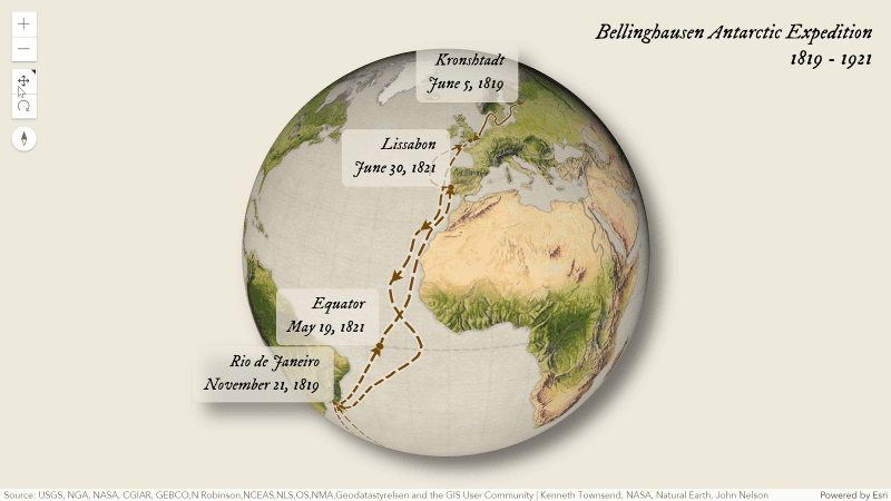 Explore the first expedition to Antarctica with the help of new line markers and label placement in this sample.