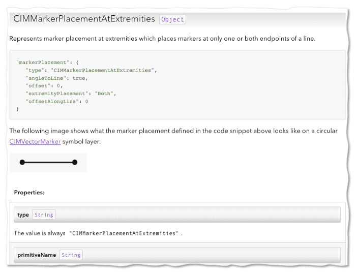 In addition to the improved support for CIMSymbols, we have updated the CIMSymbol documentation so that it is more straight-forward for you to create your own CIM symbols. As opposed to using the CIM specification on GitHub, you can simply use the API reference. All supported properties from the CIM spec are documented, along with images and code snippets.